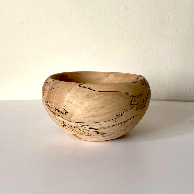 厚みのあるトチのスポルテッド材。存在感のあるうつわに仕上げました。