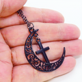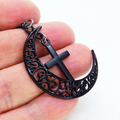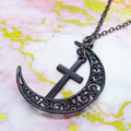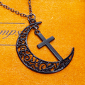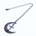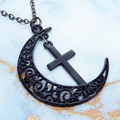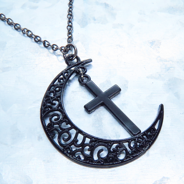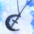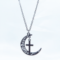 ブラックカラー 透かし三日月とロザリオ(十字架)の大人可愛いネックレス ムーンネックレス
