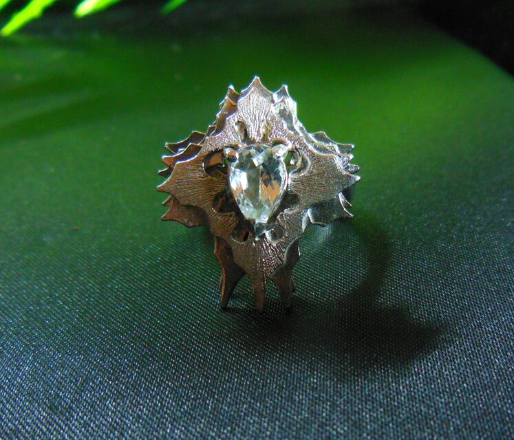 ペアシェイプカットの透明なトパーズのリングです。デザインは日常使いには向かないかもしれませんが、特別なシーンで使っていただければ幸いです。