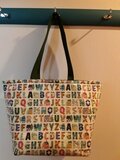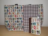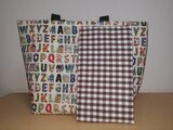 ということで、表はアルファベット柄、裏はチェック柄でルンルン気分で図書館に行けそうなカバンを作りました。