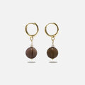 落ち着いたブラウンの色合いが美しい スモーキークォーツ に、やわらかな艶をもつ 淡水パール を組み合わせた、ドロップタイプのフープピアスです。シックで控えめなトーンが、顔まわりに自然な陰影と奥行きを添えてくれます。