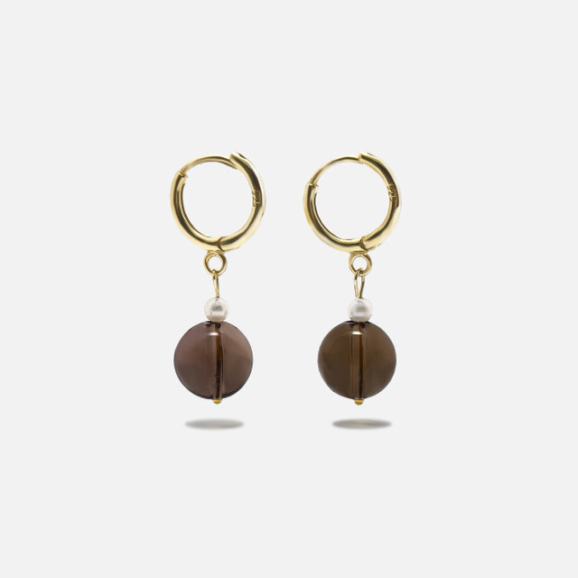 スモーキークォーツ&淡水パール フープピアス(ドロップ)|K18GP(SV925)|北欧ミニマル