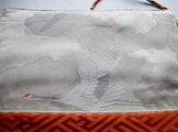 中袋には、正絹の鶴の絵柄の長襦袢を使っています。