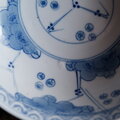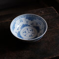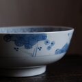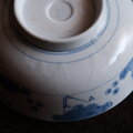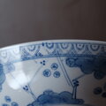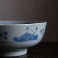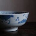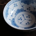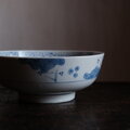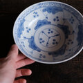 可憐な絵付け◆縁はオリエンタルな文様。時代梅文染付印判大鉢 碗 骨董・antiques 古民家 大正時代