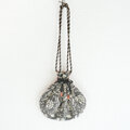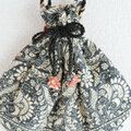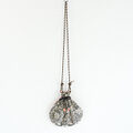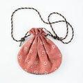 光沢のあるシルク刺繍スカーフを使って、巾着バッグを製作しました。