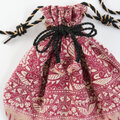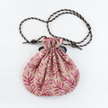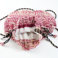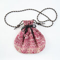光沢のあるシルク刺繍スカーフを使って、巾着バッグを製作しました。