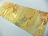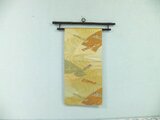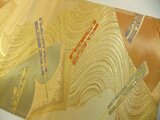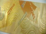 ■金糸地に流水とお扇子文様です。帯としての使用は殆どなかったようですが保管によるものなのか元々なのか、金糸部分の織りによるプツプツがあります。目立つダメージではございませんがお安くしました。文様は落ち着いた上品な色合いで高級感があります。