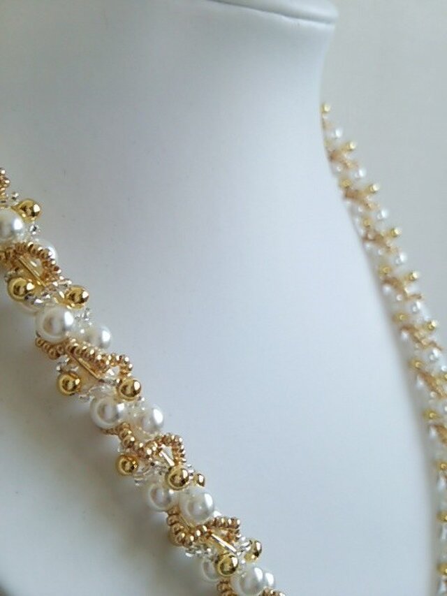パールの清楚さとゴールドの華やかさが融合したネックレスです。