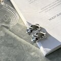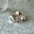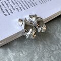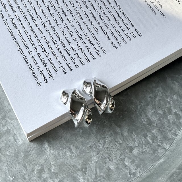 光が反射する部分と影になる部分のコントラストのある、波のうねりのようなフォルムがモダンなシルバートーンイヤリング。