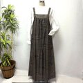着物リメイク 大島紬花柄ジャンパースカート ロングワンピース ミモレ丈 ゆったり ギャザー フリーサイズ ノースリーブ シルク