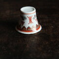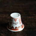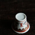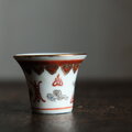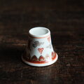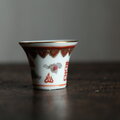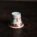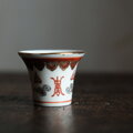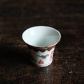 雲と漢字◆中国景徳鎮 赤絵金彩小ぶり猪口 茶杯 器 チャイナレトロ ポップ 中華 インテリアオブジェ