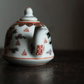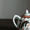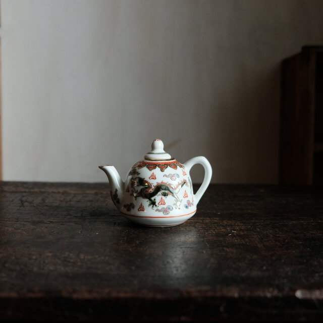 チャイナレトロで可愛い◆龍と鳳凰。中国景徳鎮 赤絵金彩小ぶり急須 煎茶茶器 雲 インテリアオブジェ