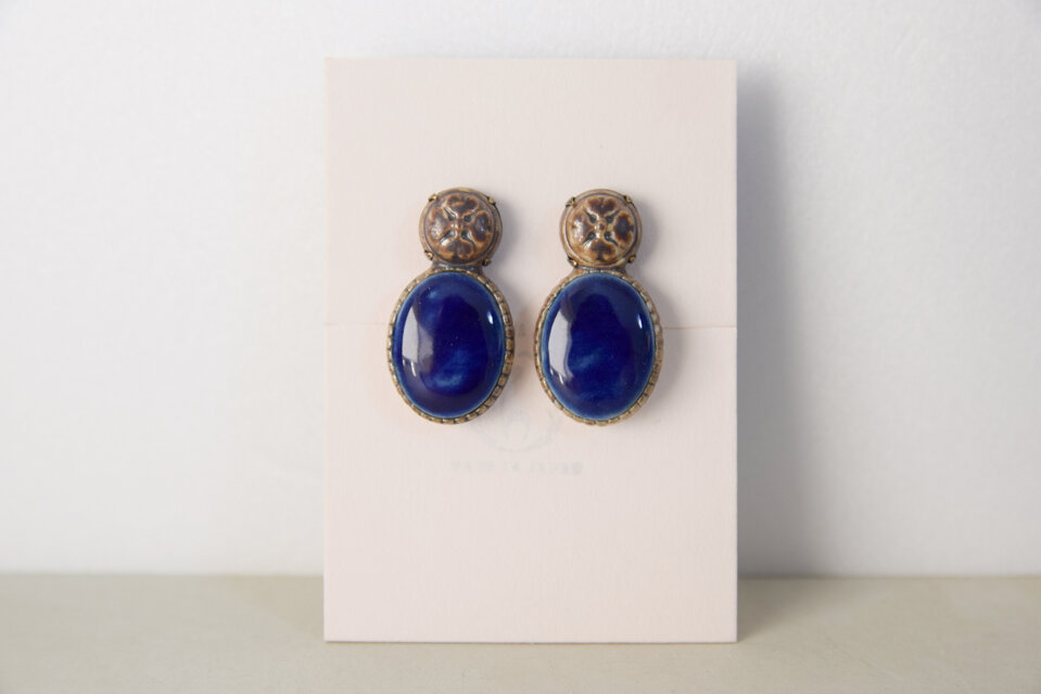 焼き物を石留めしたイヤリングです。