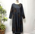 着物リメイク 大島紬花柄ワンピース ロング 2WAY ゆったり ふんわりギャザー 大人かわいい 花菱形柄 正絹 オールシーズン