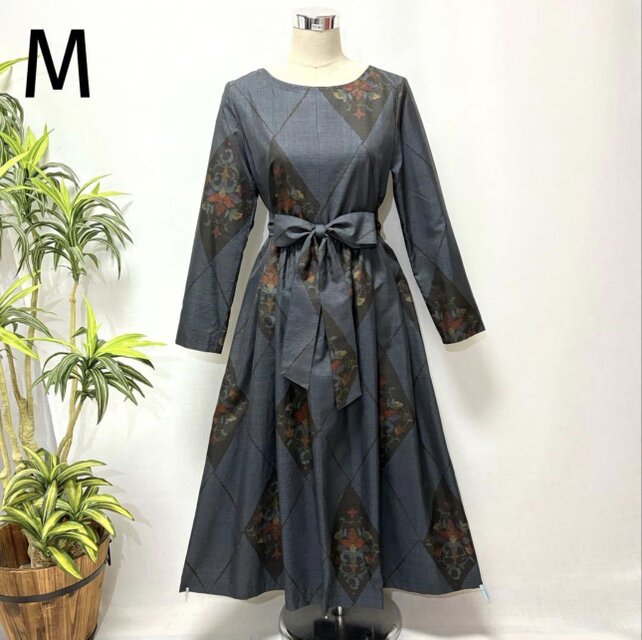 #着物 #着物リメイク #着物リメイクワンピース #花柄 #ワンピース #大島紬 #ロングワンピース #ミモレ #ゆったり #お出かけ #Lサイズ #フリーサイズ #シンプル