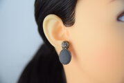 焼物の温かみを宝石のように閉じ込めたデザインの作品です。アンティークな印象の石枠もすべて焼物で1つ1つ表情に個性があります。