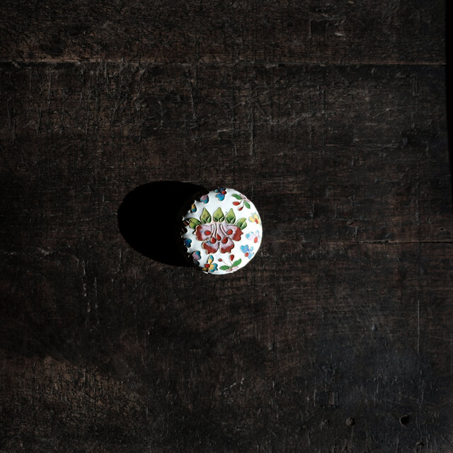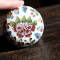 白に草花◆中国産 七宝焼小物入れ 香合 印合 チャイナレトロ シノワズリ インテリアオブジェ