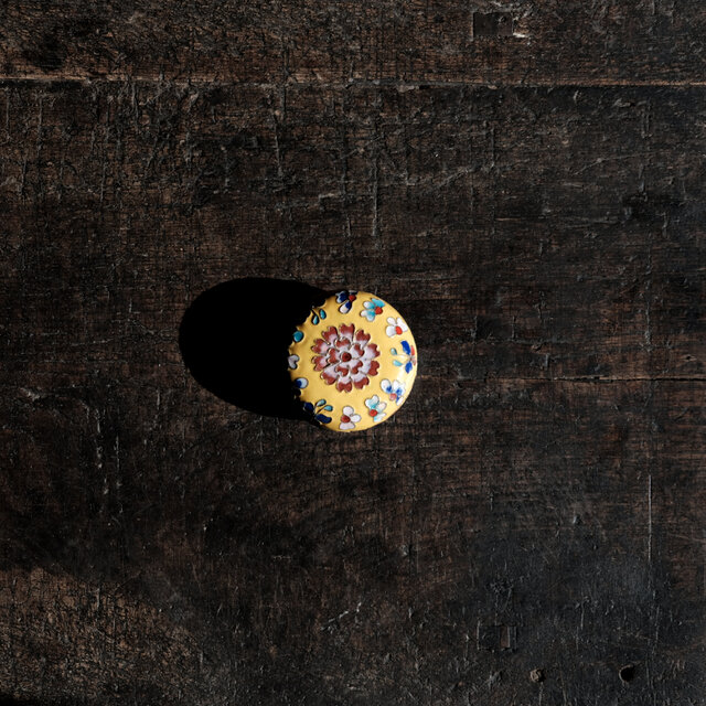 黄色に花と蝶々◆中国産 七宝焼小物入れ 香合 印合 チャイナレトロ シノワズリ インテリアオブジェ