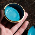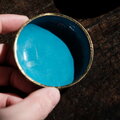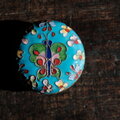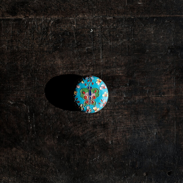 水色に花と蝶々◆中国産 七宝焼小物入れ 香合 印合 チャイナレトロ シノワズリ インテリアオブジェ