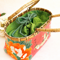 竹かごに、華やかな牡丹や遊び心のある和柄の和紙を