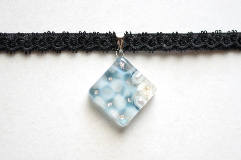 レジンでスクエアモチーフのチョーカーを作りました♪
