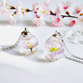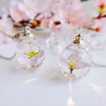 本物の桜のドライフラワーを閉じ込めた、透明感あふれるガラスドームネックレスです。