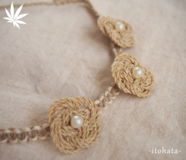 ヘンプのひもで編んだチョーカーに精麻のあわじ結びを3つつけました。