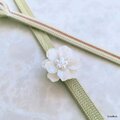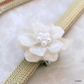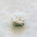 樹脂製のホワイトフラワーは花びらが繊細に重なり陰影をつくりつつ清楚な雰囲気を醸し出しています。