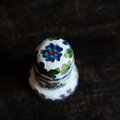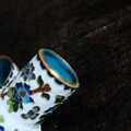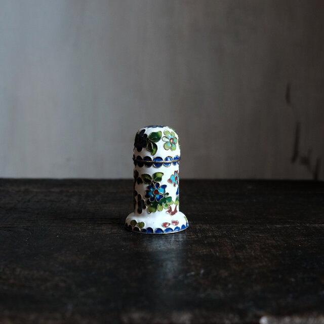 白に草花◆中国産 七宝焼 小物入れ 楊枝入れ チャイナレトロ シノワズリ インテリアオブジェ