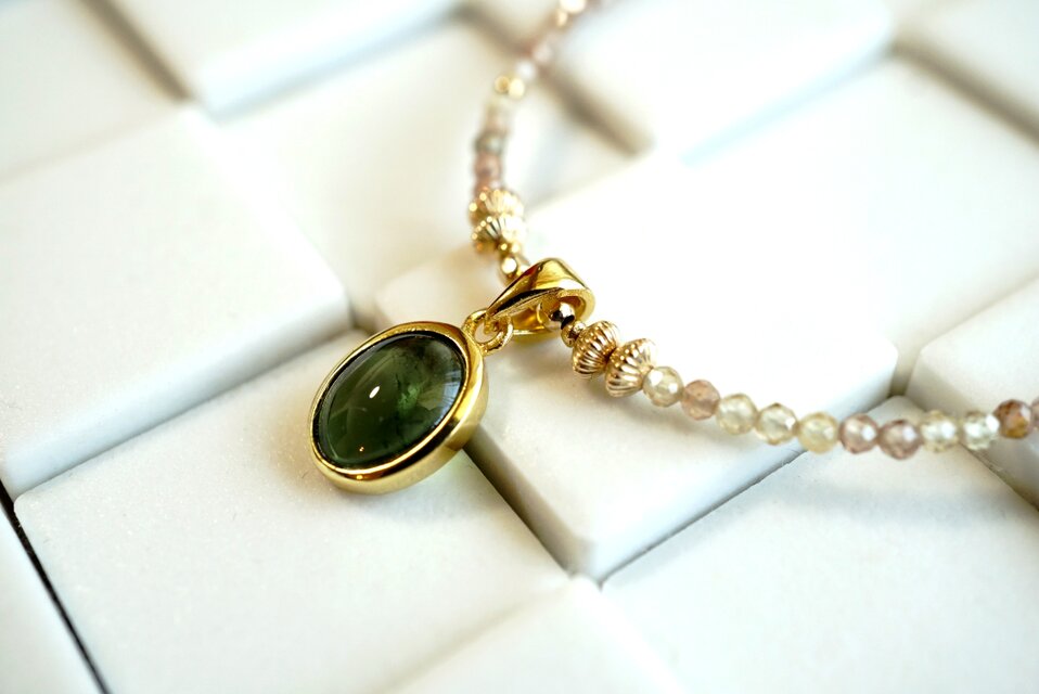 グリーントルマリンを1石下げた天然ジルコンネックレス