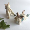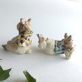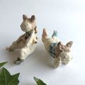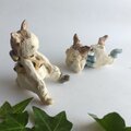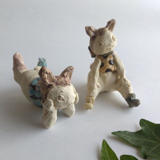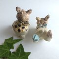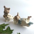 うさぎみみで、お揃いの色違いの衣装のペアの陶人形です。