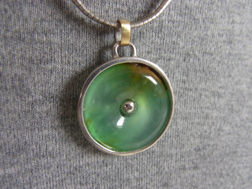 真ん中に穴が開いた翡翠です。