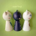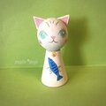 3つのバレンタイン猫さん人形 ①「お魚どうぞ」クリーム色にゃんこ