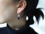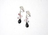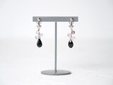 ブラックとマルチカラー、2種類のスピネルとシルバービーズを繋ぎ、彩りを添える天然石イヤリングに仕立てました。