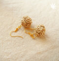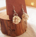 国産の精麻(麻の茎の繊維)で結んだあわじ玉をピアスにしました。