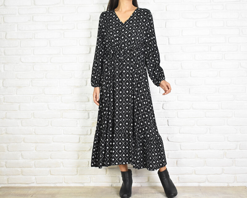 今回はシンプルなモノトーン花柄の大人可愛いワンピース。