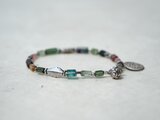 発色の濃い上質なマルチカラー・トルマリンとインドのオールドシルバー・ビーズを組み合わせ、気品のある天然石ブレスレットに仕立てました。