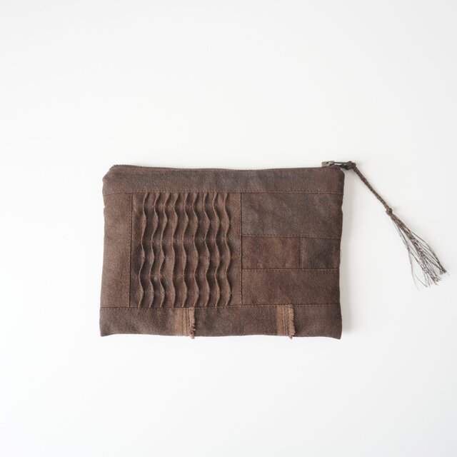 小さな布たちのフラットポーチ 柿渋染め