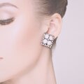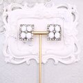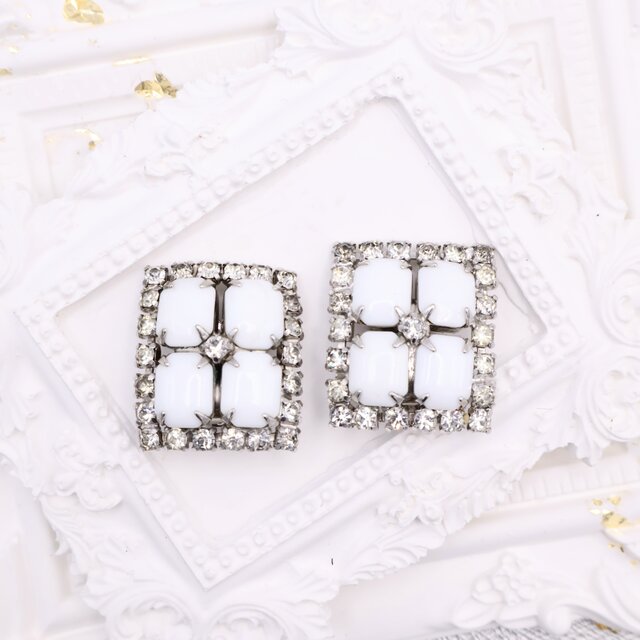 【アメリカ買付】ホワイト×ラインストーン*White Square Motif Earrings 1960s–1970s