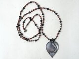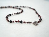-India old silver- "black & red" braid long necklace