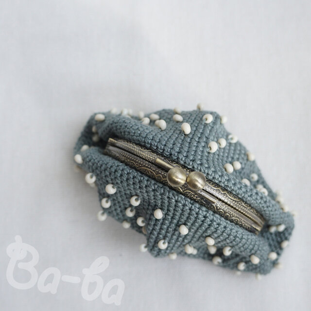 ばあば ⋱ 飛び飛び勾玉ビーズの編みがま口(asagidot・C1794)