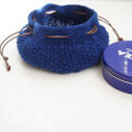 ばあば、鹿の子編みのころりんknit巾着(bleue point de riz・KPO7)