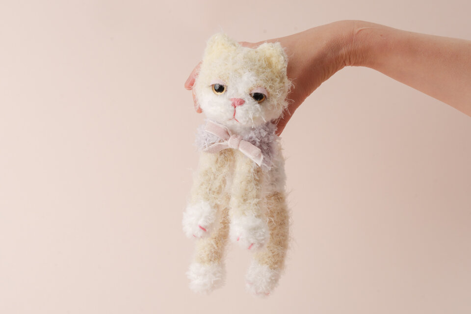 手のひらにちょこんと乗せられる大きさなので、バッグにそっと忍ばせてお出かけのお供にピッタリです。 お気に入りの場所に置いたり、同じ大きさのねこぐるみと並べると、さらに個性的なディスプレイが楽しめます。