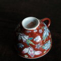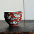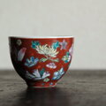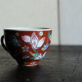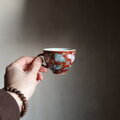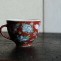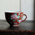 ブラウンにカラフルな草花◆中国景徳鎮 色絵ティーカップ 茶器 チャイナレトロ シノワズリ インテリア ビンテージ