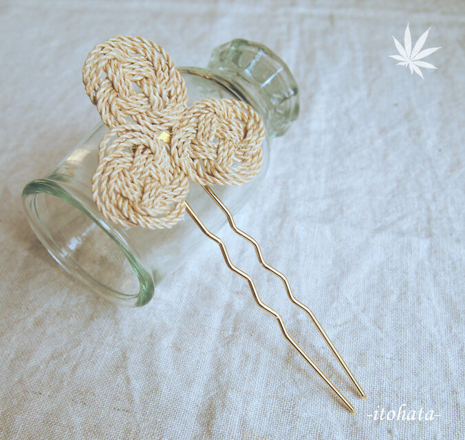 国産の精麻と、そこから手績みした麻糸を使ったかんざしです。