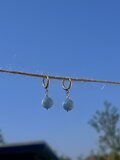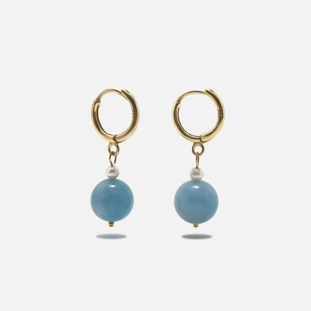 小ぶりなフープから天然石とパールが軽やかに揺れ、顔まわりに透明感とやさしさを添えてくれます。