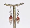 葉っぱのようなカレンシルバーとたわわなアンデシン、インドシルバー鈴を繋いだピアスです。
