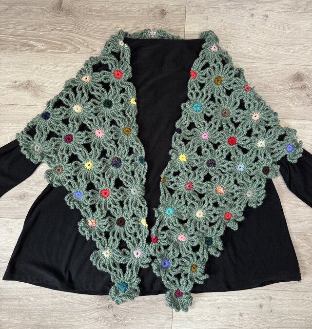マーガレットモチーフを繋げた三角ストールです。