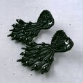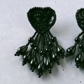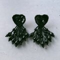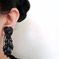 ブラックのビーズとスパンコールで刺繍されたハートにフリンジのようにビーズがじゃらじゃらと垂れ下がったデザインのヴィンテージピアスです。
