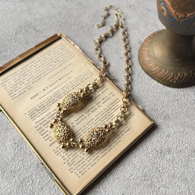 N313-【 1928 】ヴィンテージネックレス Gold Tone Filigree Victorian Revival